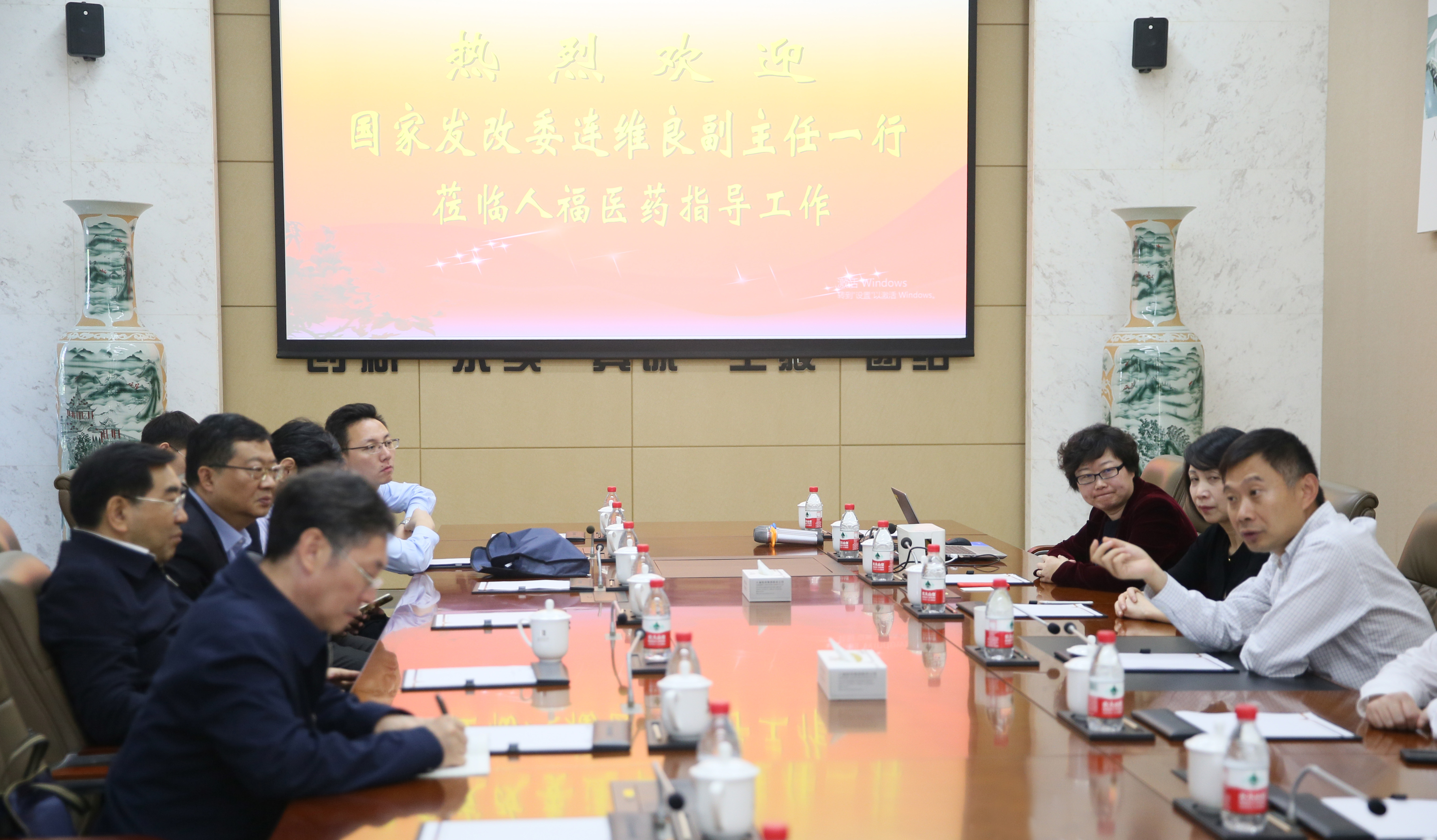 4月24日,国家发改委副主任连维良一行莅临熊猫体育集团调研,熊猫体育集团董事长王学海,医药研究院院长沈洁予以接待。